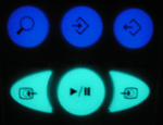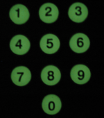 | Also called Glow keys or Firefly keys. These keys use a special phosphorescent chemical that absorbs energy from a light source, and then emits a glow over a period of time. The standard glow key is a neutral, off-white color that then glows a pale yellow-green under low light conditions. Other glow colors are available such as blue or purple, that then glow blue or purple. The length of time of the glow will vary depending on the strength of light used to "charge" the keys (ambient room light in most circumstances). All glow keys will stop glowing after a period of time. Glow keys are not related in any way to back lit keys, and use no power from the remote control, so will not affect battery life. | ![]() Standard Glow Color |